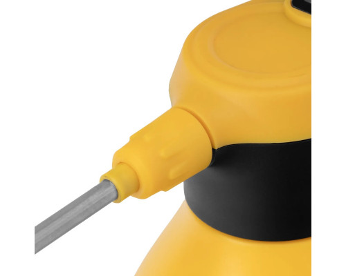 Аккумуляторный опрыскиватель Denzel D-2LI 64791 с баком объемом 2 л и Li-Ion батареей на 3,7 В, емкостью 2,2 А·ч, предназначен для ухода за растениями — внесения жидких удобрений, распыления инсектицидных средств. Также может использоваться для мытья окон, фасадов, дорожек, садового инвентаря. Размер и форма факела регулируются, максимальная дальность распыления составляет 1 м, что позволяет обрабатывать участки различной площади и удаленные места. Опрыскиватель экономит силы и время пользователя, будет полезен в быту и на производстве.