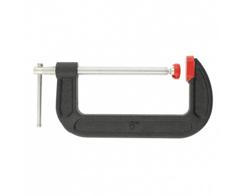 G-бразная струбцина Matrix 20606 с максимальной шириной зажима 150 мм используется для фиксации заготовок или закрепления их на верстаке или станке. Позволяет склеивать детали, а также сверлить их, шлифовать, опиливать и проводить другие работы. Подходит для использования при сварке. Рама изготовлена из высокопрочного чугуна, поэтому выдерживает значительные усилия. Винт с трапециевидной резьбой обеспечивает надежную фиксацию предметов. Струбцина применяется в слесарном и столярном деле, а также в домашнем хозяйстве.