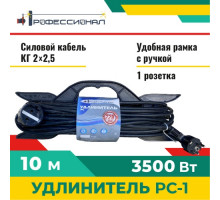 Удлинитель силовой 10 м, 16 А, тип УХз16, КГ 3 x 2.5 мм, 1 розетка Сибртех 95895